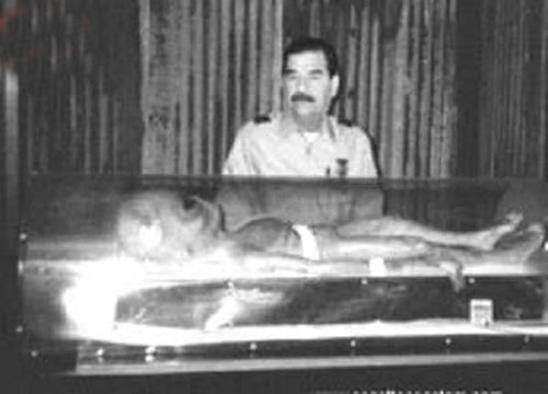 阴谋论家的传言是萨达姆·海珊与外星人也有关系,至少他有发现坠落的UFO。这秘密基地在小扎卜河(Little Zab River)的山谷上,与一个叫扎兹斯(Zarzi)的城镇很近。