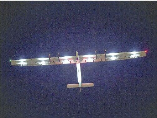 另外,“阳光动力2号”在着陆前因需要慢慢降低高度所以在空中盘旋了2个多小时,而在这期间,机场附近的警察和消防不断接到居民的报告,纷纷担心称似乎看到了不明飞行物UFO。一位居住在爱知县小牧市的男性说道,“我看到天空中出现了一排亮光而且在慢慢向我靠近,因为不知道那是什么所以我有点害怕”。其实那些亮光是飞机机翼上发光的太阳能电池。