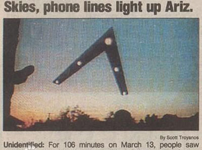 1997年3月13日晚八点到十点之间,在美国亚利桑那州菲尼克斯及附近地区大约共有700多名民众看到在菲尼克斯南部山脉上空有五个排列成V字形的白色发光点缓缓飞行,这种现象被称为菲尼克斯之光。